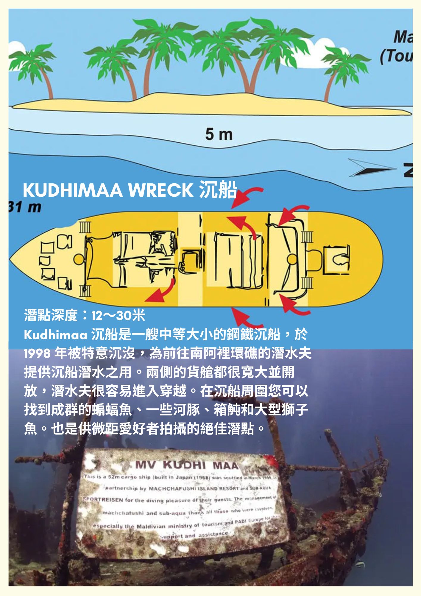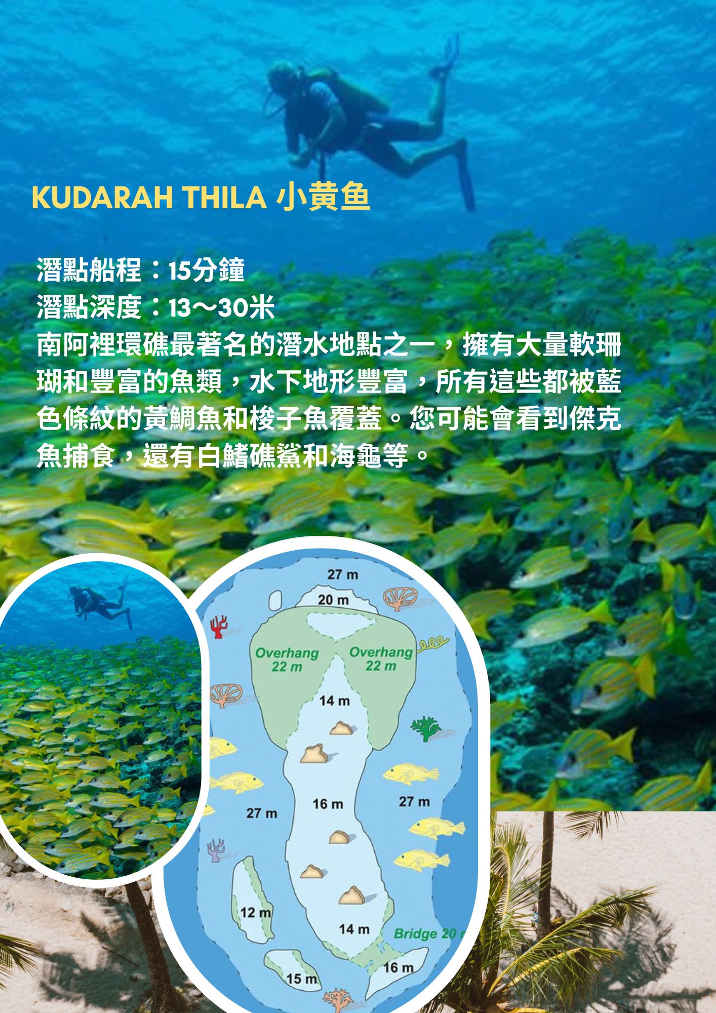 | 第二天 | 居民島接應 ~前往迪古拉居民島~入住度假村 ~潛點安排(三支氣瓶) |