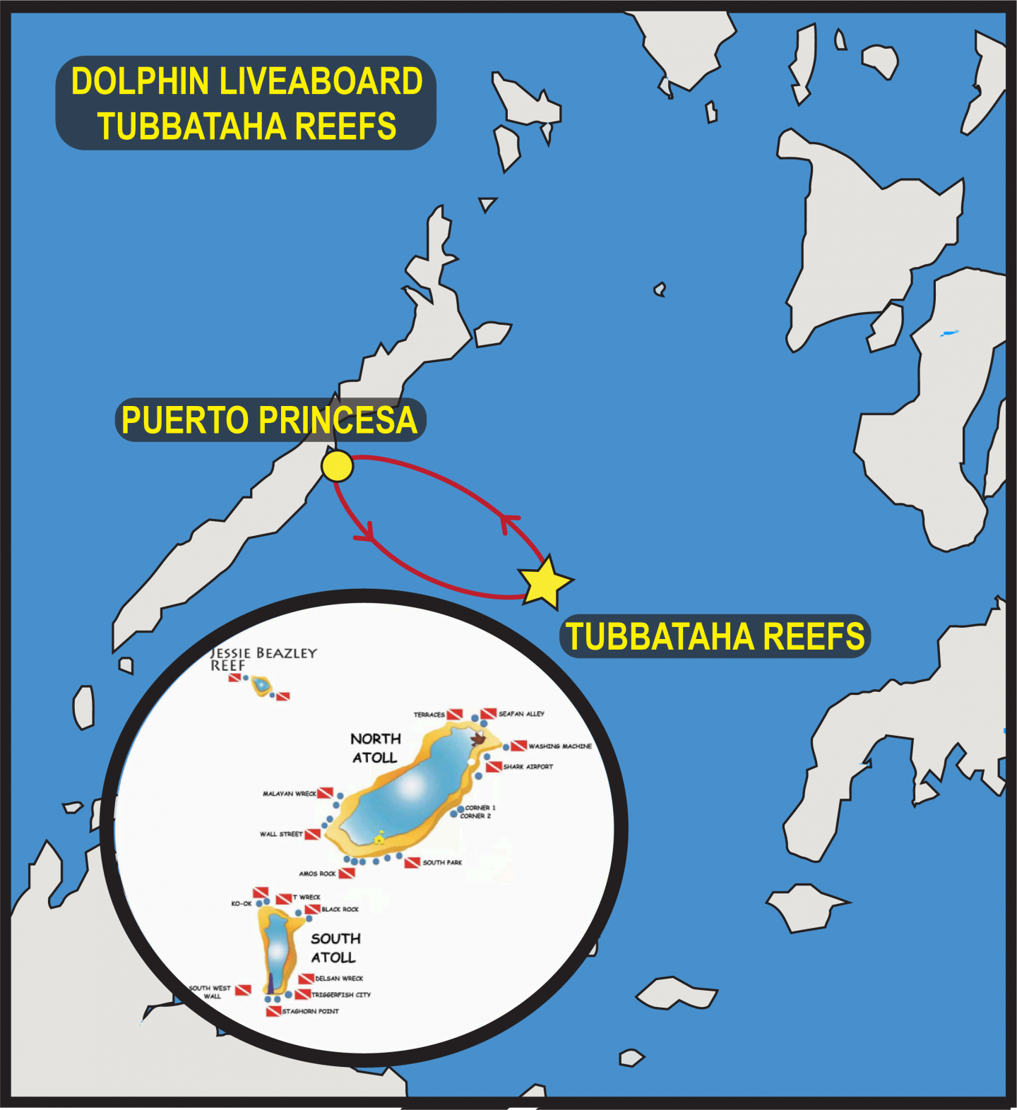 | 7:00, AM Tubbataha Reefs Dive 17 9:00, AM Breakfast 10:00,AM Dive 18 12:00,NN Lunch 2:00: PM Dive 19 5:00, PM Dive 20 7:00, PM Dinner |